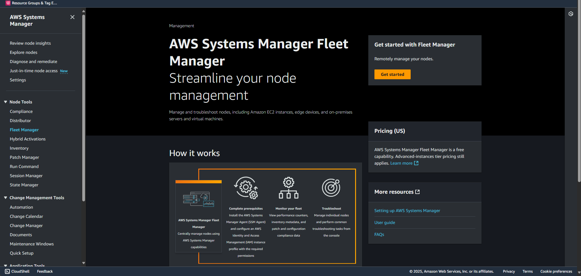 - Navigate to AWS Systems Manager > Node Tools> Fleet Manager