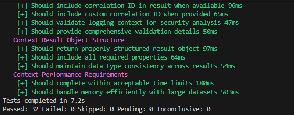 The comprehensive nature of these tests—covering 50+ test cases across 9 different contexts—demonstrates the level of rigor needed when testing security-focused code. This investment in testing pays dividends in reliability, maintainability, and security assurance.